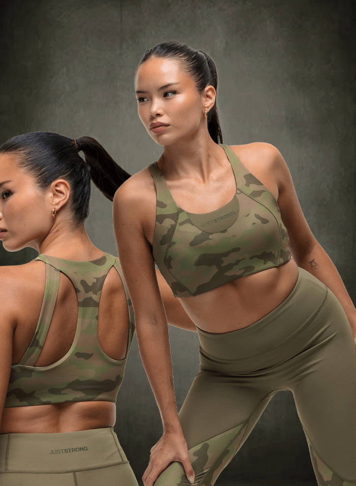 Vertex Camo Multi Strap Sports Bra - Military Green