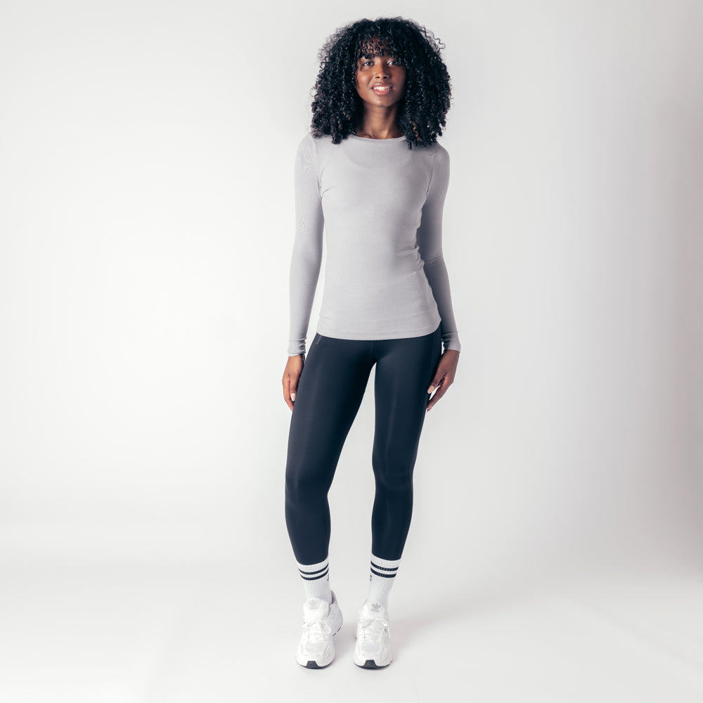 This long-sleeved workout tee is meticulously crafted from natural Bamboo fibres, a fabric renowned for its exceptional softness, breathability, and absorbency. Designed with the modern athlete in mind, this tee offers unparalleled comfort and performance for various fitness activities. The bamboo fabric feels incredibly soft against the skin, providing a luxurious and comfortable fit. It's exceptional breathability allows air to circulate, keeping you cool and dry even during intense workouts. Boasting 360-degree stretch, allowing it to adapt to your every move, whether you're performing dynamic stretches, intense cardio, or weightlifting exercises, this top moves with you, ensuring maximum comfort and freedom of movement. If you're looking for a tee that combines comfort, performance, and style, look no further, this is the perfect choice for