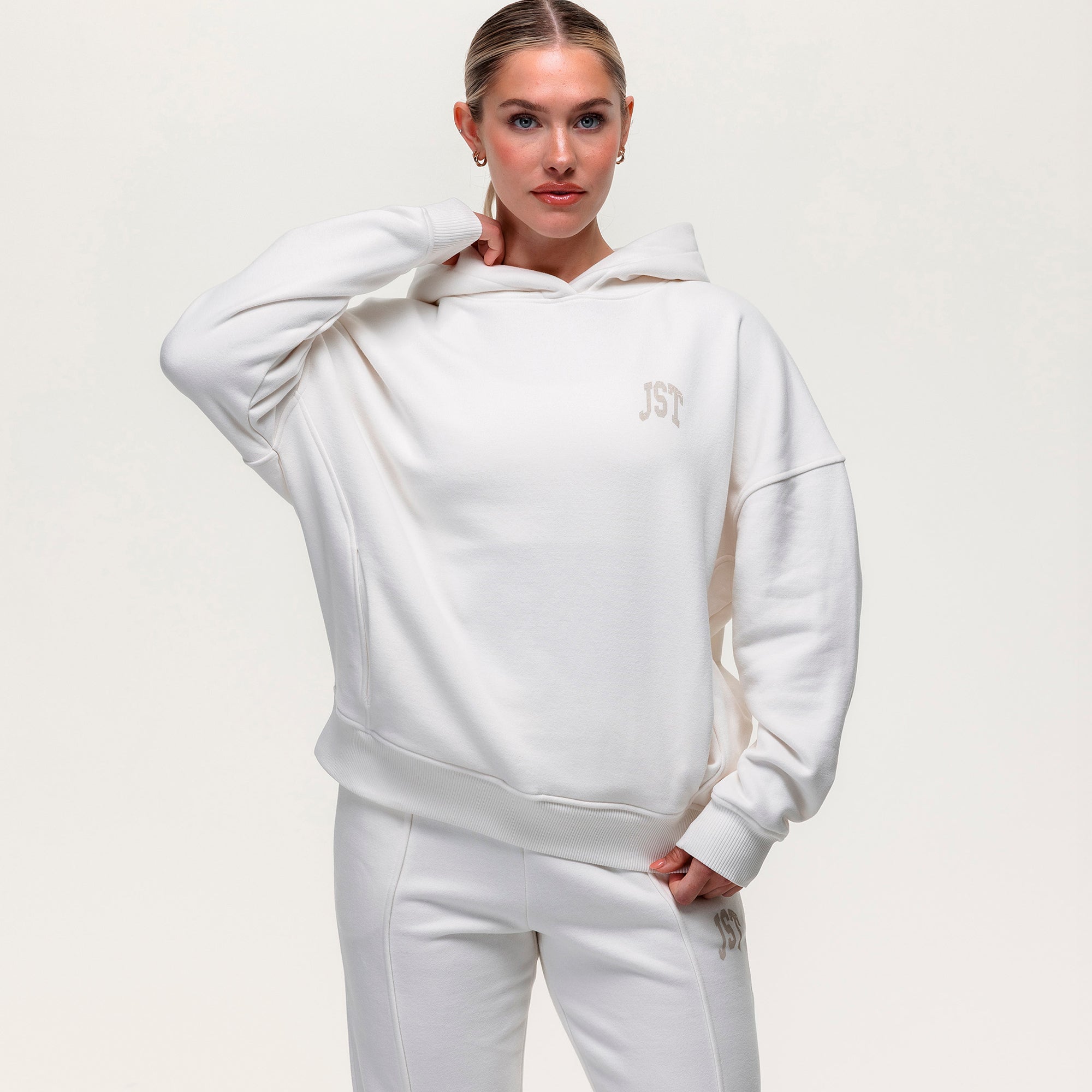 The Throw-on Oversized Hoodie delivers cozy comfort with a modern twist. Made from plush cotton/poly fleece, it features a relaxed oversized fit and stylish seam detailing—perfect for lounging, layering, or casual days out.